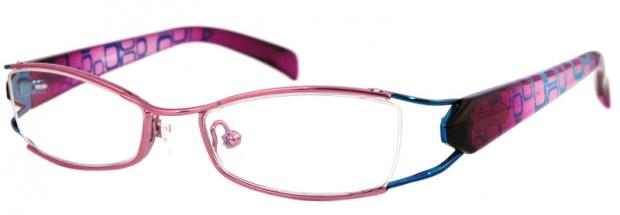 Lätt och nätt metall glasögonbåge med plast skalm som är mönstrad.